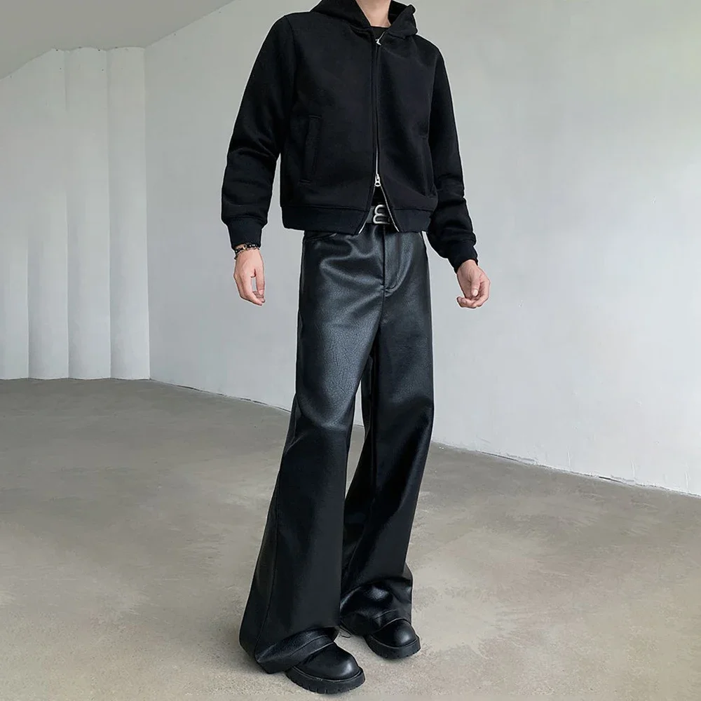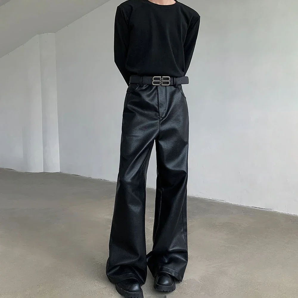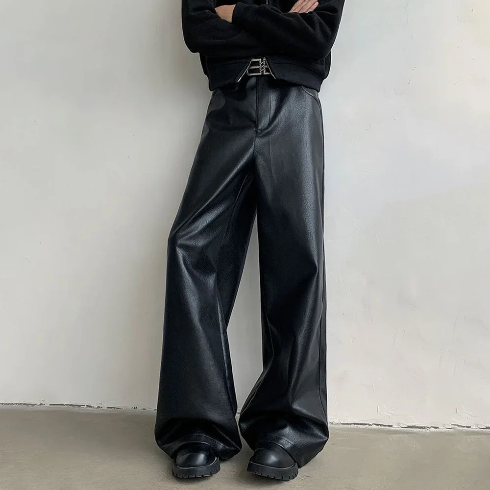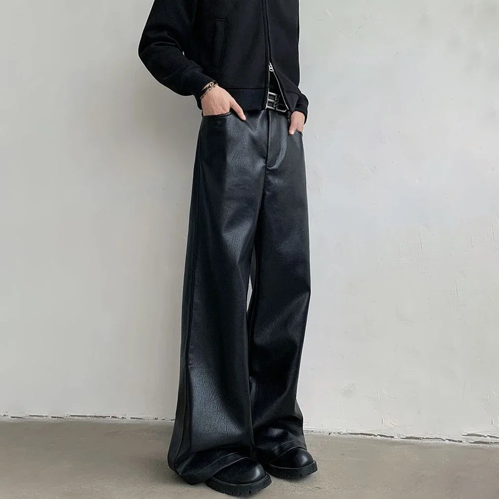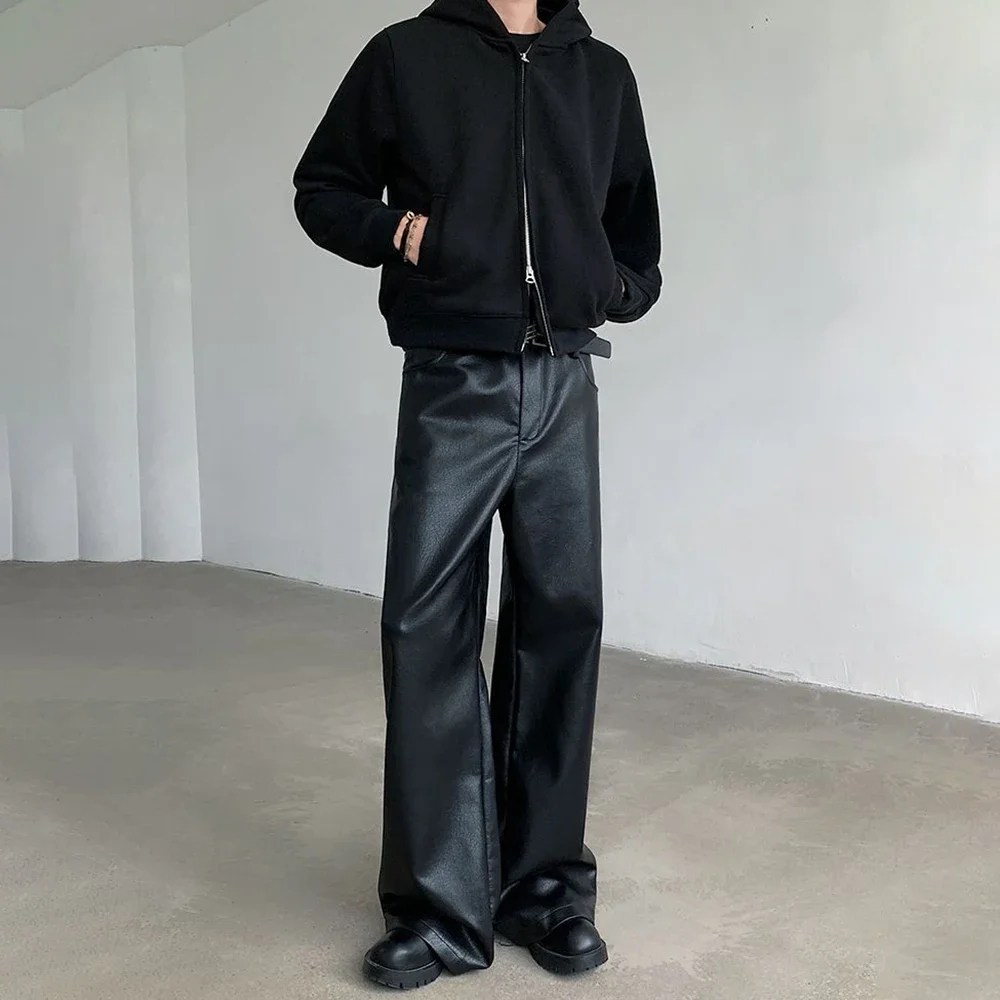 Mens Pu Leather Pants Rider Motorcycle Casual Pants Streetwear Fashion Hip-Hop Trend Youth Campus Pants Men’S Clothing New